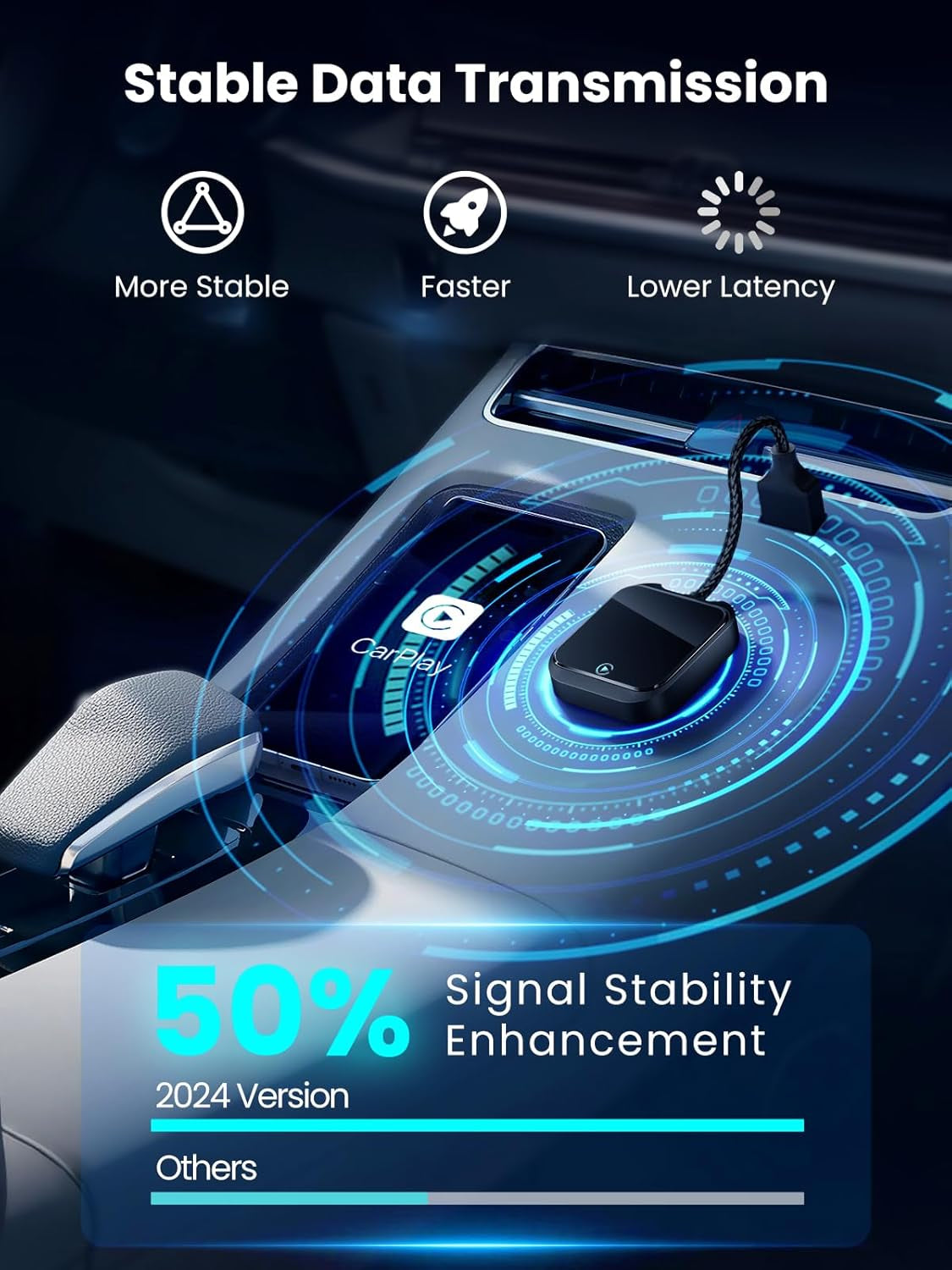 Wireless Carplay and Android Auto Adapter with Fast Stable 5Ghz Wifi Bluetooth, Wireless Carplay Adapter for Apple Applies to Cars after 2016 & Phone with Android11+/ Ios10+ & Usb-A/Type-C (Black)